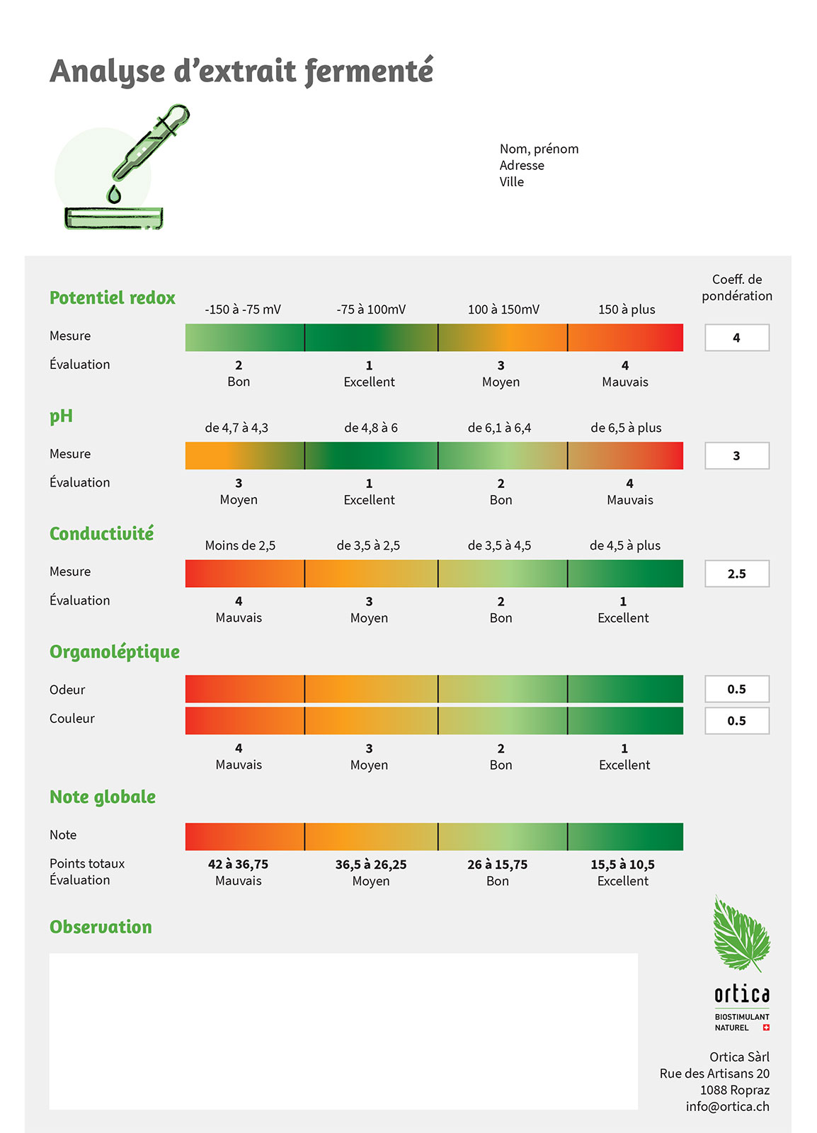 Vous recevez en retour notre fiche d'analyse d'extrait fermenté en retour, dûment complétée.